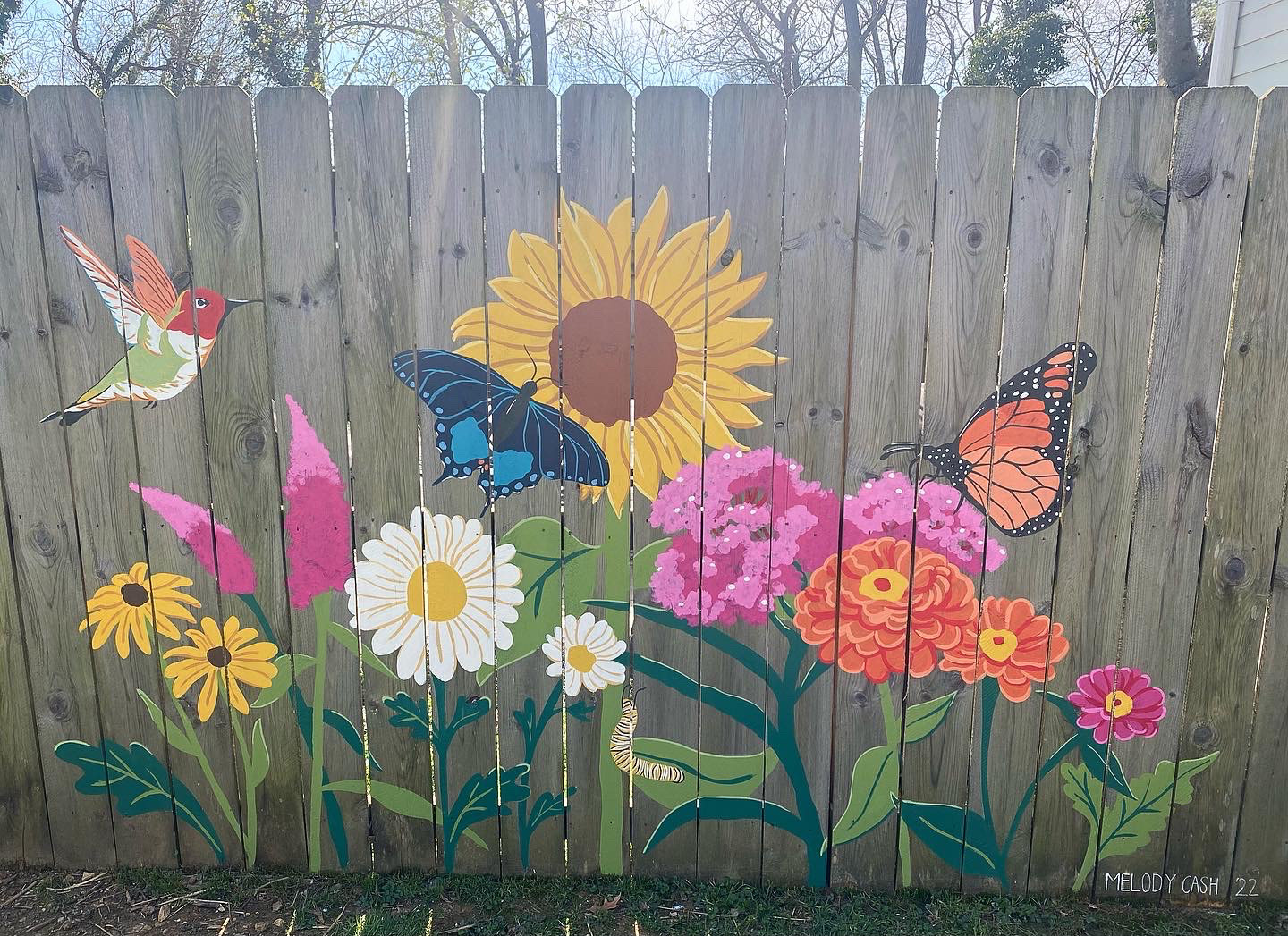In April of 2020, as I was quarantining at home and looking for ways to pass the time and quell the existential dread of a global pandemic, I had an idea to paint a mural on my backyard fence. Though this was something I had never done before, I felt confident that my background in both painting and graphic design would allow me to bring my vision to life. I did my research, took an online workshop, made lots of sketches, and got to work. In the end, I was super proud of myself for pulling it off and having fun while doing it. I posted the mural on my social media channels, and to my surprise, requests for mural jobs started rolling in. Thus began my journey as a freelance muralist. Now, I have designed and painted over 15 murals – from fences, to interior walls, to front porch steps.